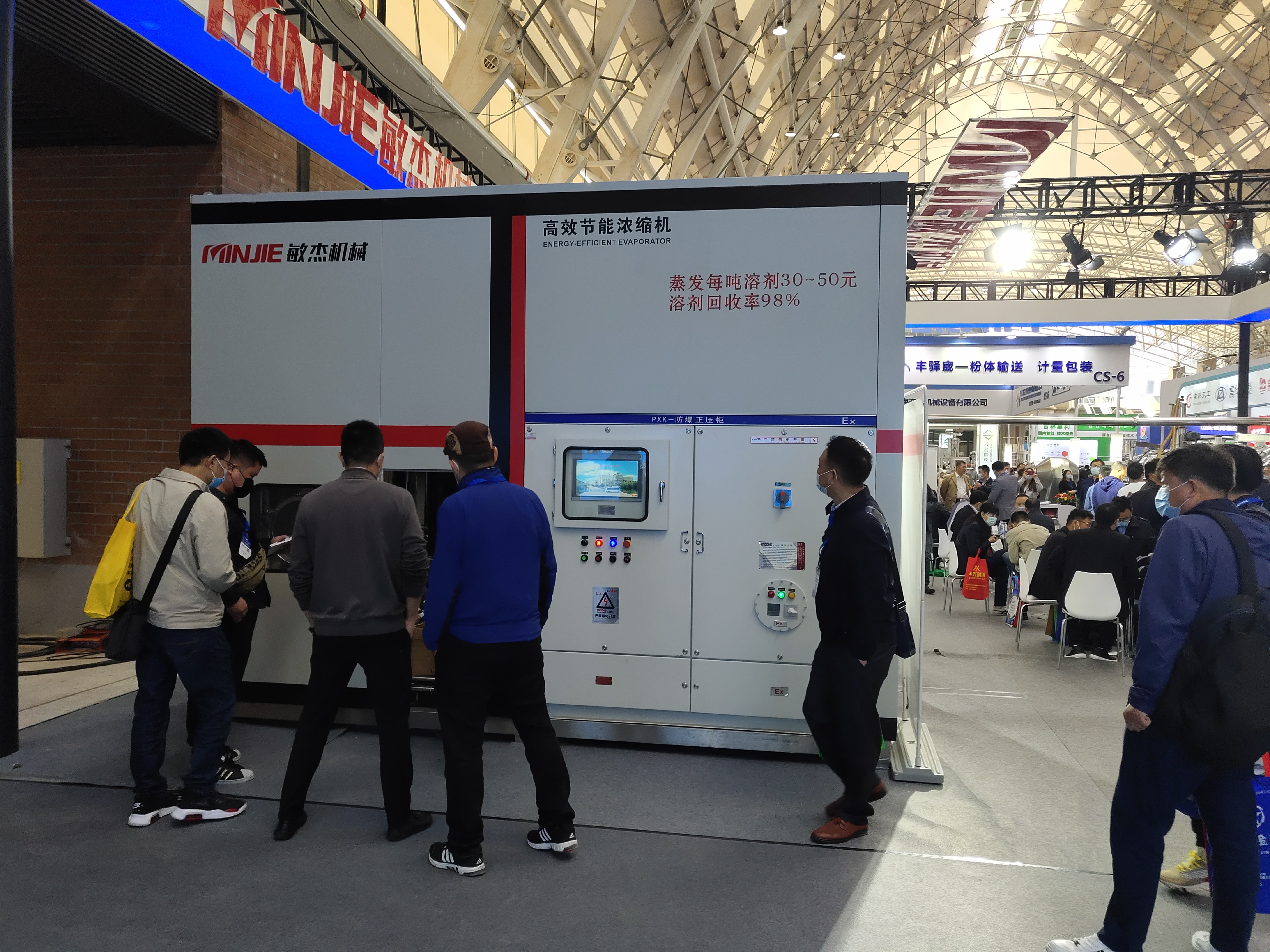 此次展會展出的SDR高效節(jié)能濃縮機是我司近幾年來研發(fā)的一款新型蒸發(fā)濃縮設(shè)備,智能、節(jié)能、低溫、安全、環(huán)保、真空是該設(shè)備的特點。該產(chǎn)品已廣泛應(yīng)用于化工、食品、生物、醫(yī)藥、保健、環(huán)保、等多個行業(yè)的脫水工藝,同時適用于有機溶劑的蒸發(fā)濃縮,包括水溶液的蒸發(fā)濃縮。因其每蒸發(fā)一噸溶劑只需50元已成為我司銷量最火的一款蒸發(fā)設(shè)備。